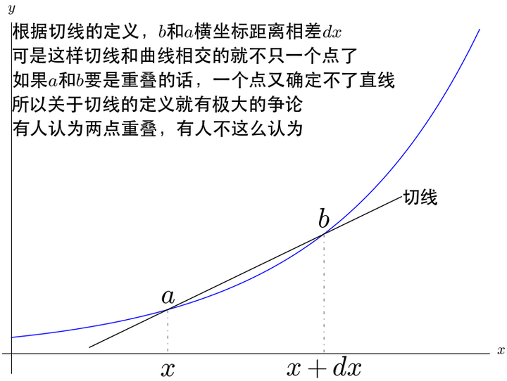 仔细看看运算过程, dx 先是在约分中被约掉,然后又在加法中被忽略,就是说,先被当作了非0的量,又被当作了0,这就是大主教贝克莱(就是在高中政治书被嘲笑的唯心主义的代表)所攻击的像幽灵一样的数,一会是0一会又不是0。