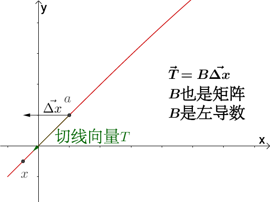 上图的\vec{\Delta x}指向右边,实际上求出的A是右导数,我换个方向就可以求出左导数: