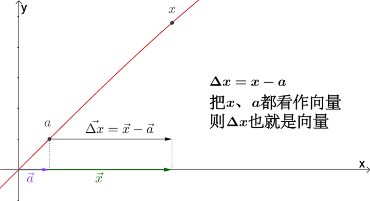 顺便说一句,此时在 a 点附近同样也有 f(x)\approx f(a)+A\Delta x 。