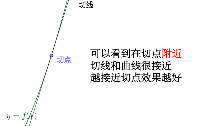 以直代曲”的意思就是,切线可以在切点附近很好的近似曲线:
