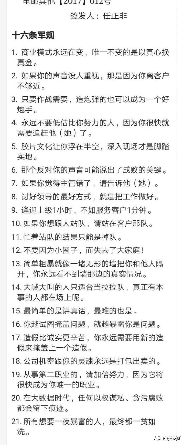 10月16日,华为内部网站心声社区发布了华为创始人任正非关于华为用人态度的一篇讲话。