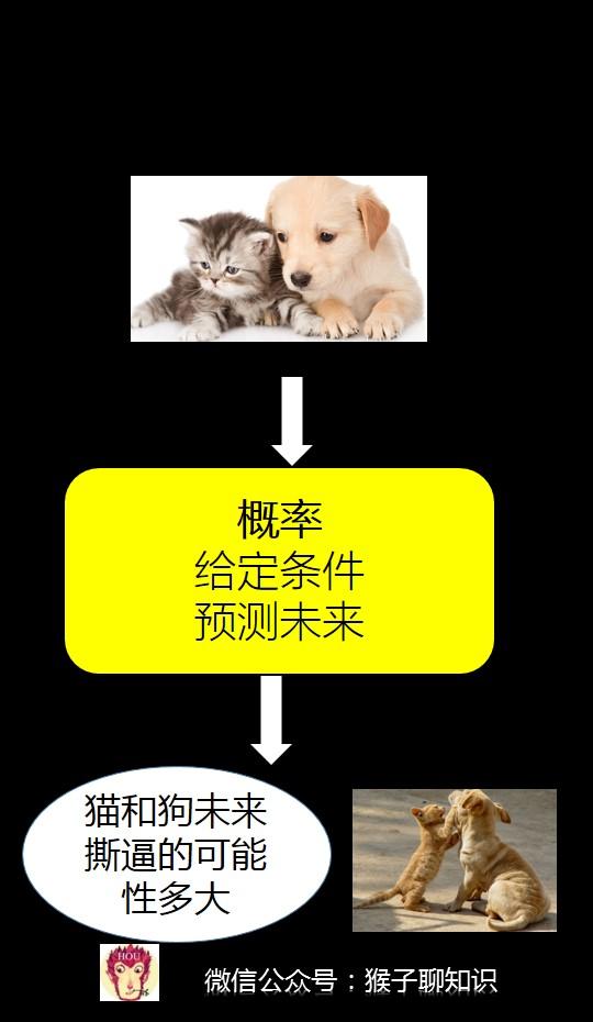 如果我们用猫和狗这个例子来举例,就是给了你猫和狗的行为特征(给定条件),然后预测猫和狗明天撕逼的可能性多大。