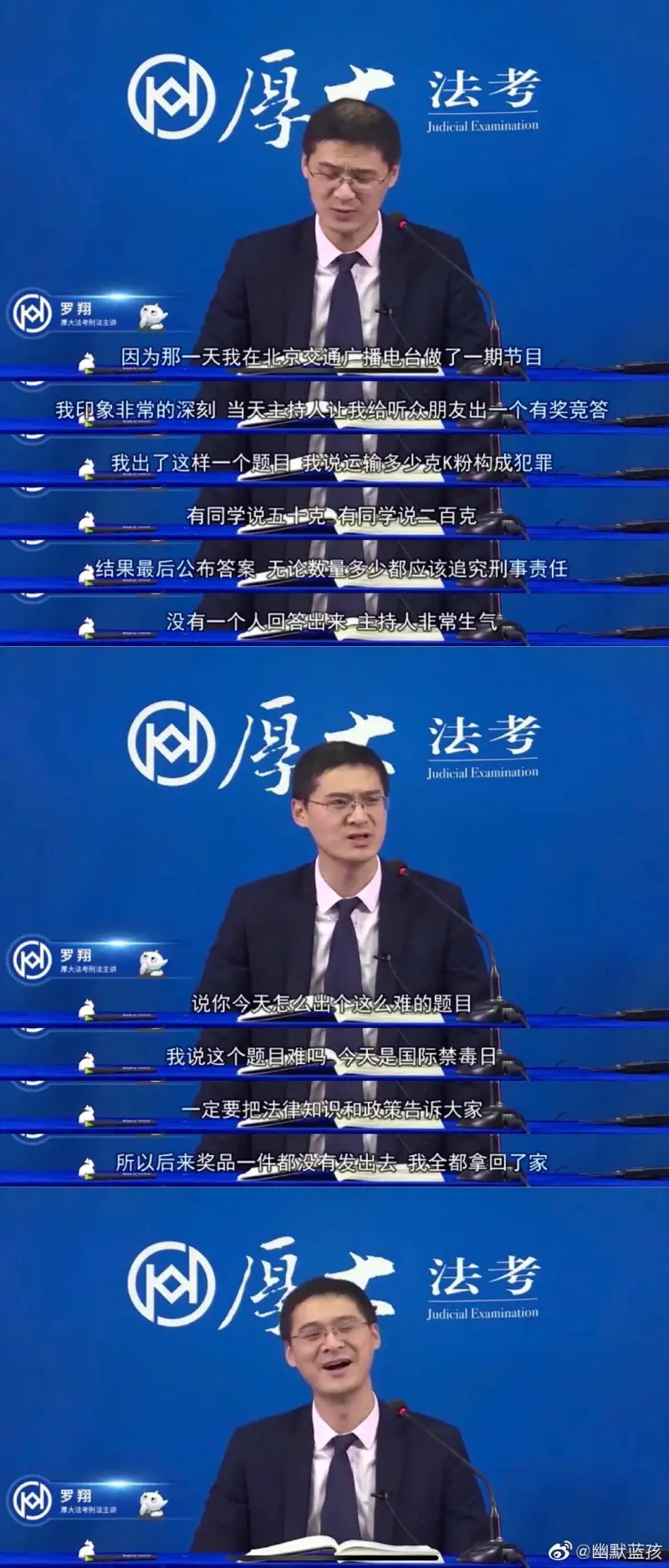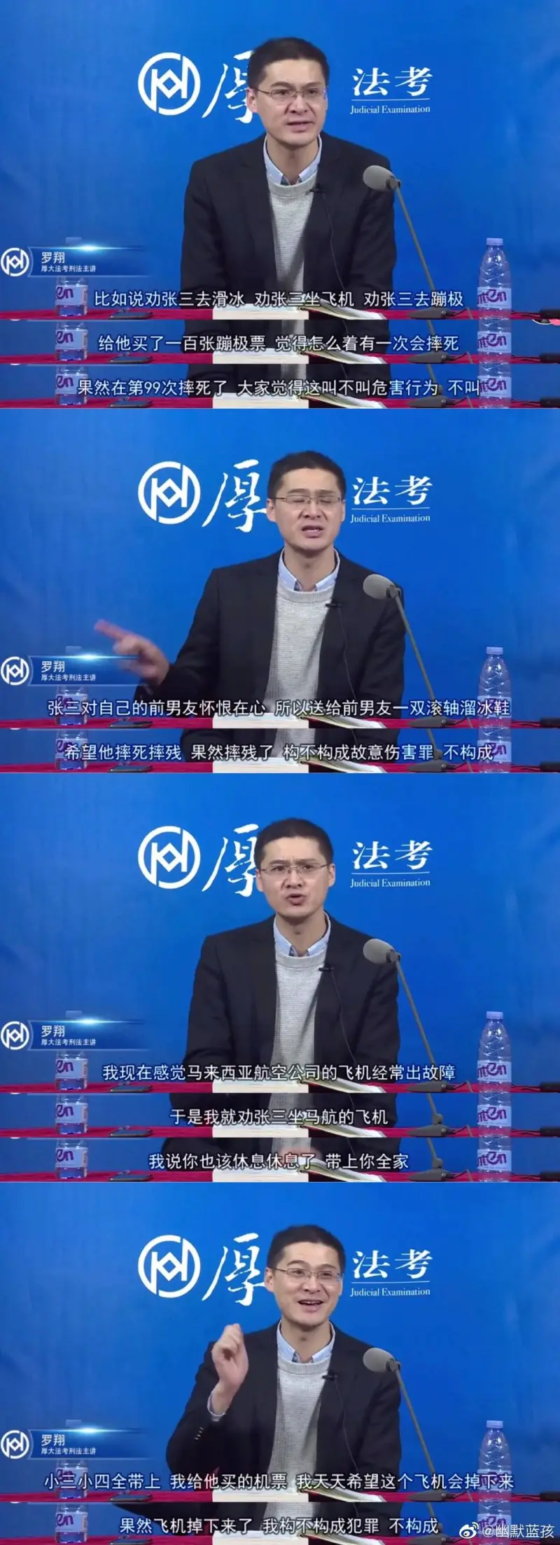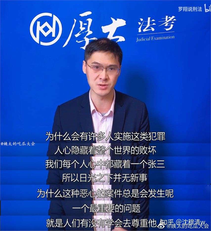 罗翔(1979年-),湖南耒阳人,北京大学法学博士。现任中国政法大学刑法学教授,刑法学研究所所长,华一律师事务所兼职律师。其主要研究领域为刑法学、刑法哲学、经济刑法、性犯罪。在学校向本科生和研究生开设刑法总则、刑法分则、经济刑法、刑法研讨等多门课程。