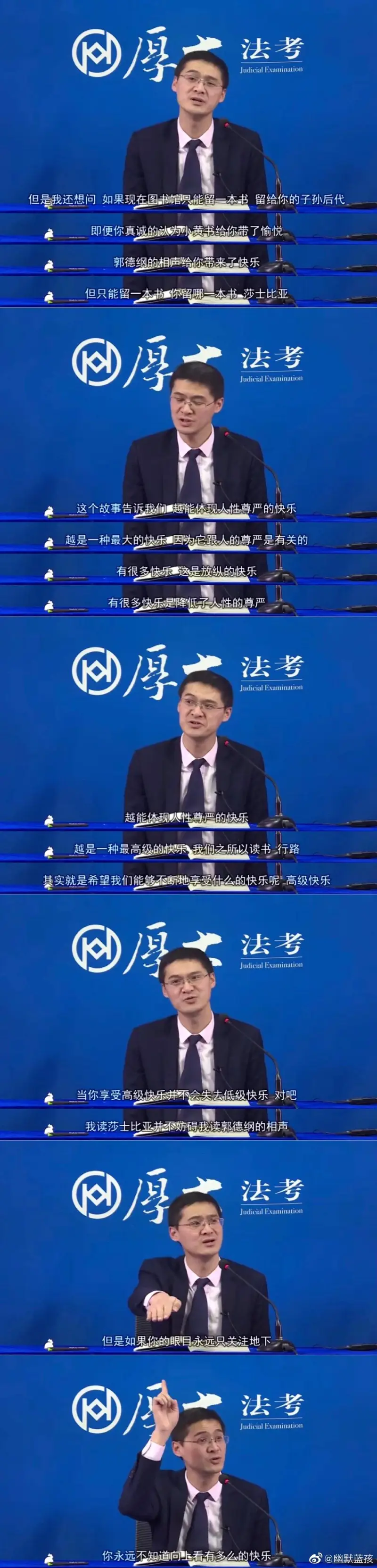 不要有知识的优越感,追逐知识只是让我们承认自己的无知。学习法律不是钻法律的漏洞,而是真正认定法律的信念。坚持阅读经典,与人类伟大的灵魂对话,走出我们固有的