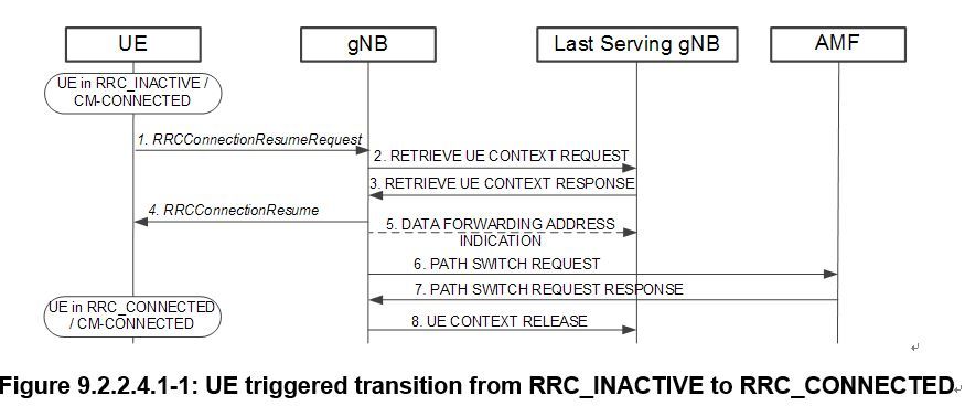 下图为一个例子,终端触发的RRCRRC_INACTIVE向RRC_CONNECTED转移。
