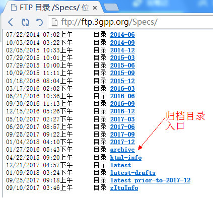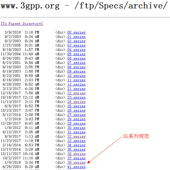 第三步:打开 archive 子目录,即可看到不同系列的技术标准文档,如36系列为LTE(4G)技术系列,38系列为5G系列。