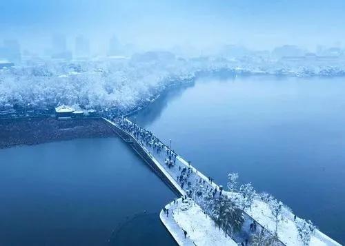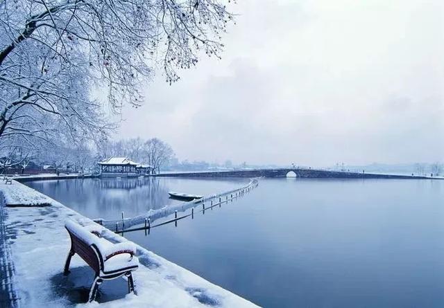 湖上没有船,空空荡荡的西湖,空空荡荡的分不清界线的云、雾、水、雪,像面对一张还没有着墨的纸,一张空白的纸,这么素净。这空的白,像是最初的洪荒。