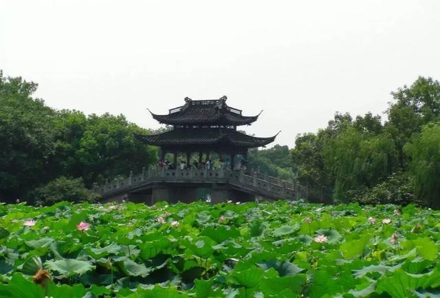春日是“苏堤春晓”的西湖,“柳浪闻莺” 的西湖。夏季是“曲院风荷”的西湖,“花港观鱼” 的西湖。入秋是“平湖秋月”的西湖,“三罈印月”的西湖。黄昏时有“雷峰夕照”看晚霞的西湖,有“南屏晚钟”听净慈寺庙院钟声的西湖。到了冬天,大雪纷飞,还剩下远远一痕“断桥残雪”的西湖。