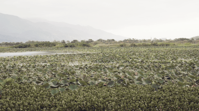 湖水很远,时隐时现。远远一痕起伏蜿蜒的山峰,若有若无,错错落落,随云岚流转变灭。