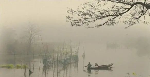 张开眼睛,看到雾、雪、水、天弥漫的一片空白,闭起眼睛,空气里袭来梅花时断时续的香、皮肤上乍暖还寒的温度,听觉里不知何人荡桨,微微水波声,渐行渐近。