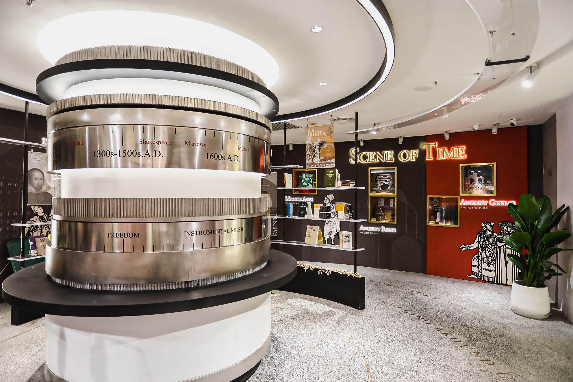 TIMECROSS, 既是时代的交点,也是时间的交点,寓意书店所在的空间既是文化与文化的交点,也是人与人的交点,呼应书店的开放式设计,多元价值的文化观念。