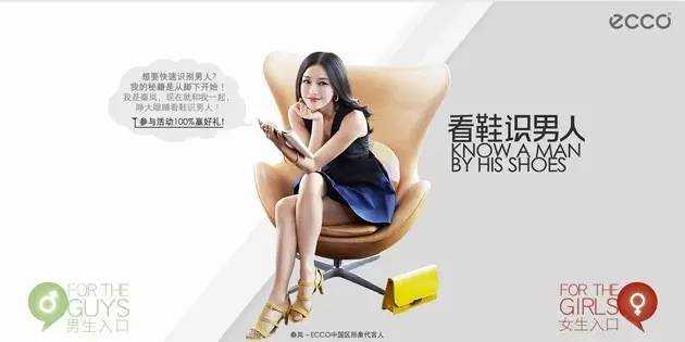 为了迎合这种需求,ecco 有意调整了自己的策略。区别于它在全球宣传的「自然、经典」,ecco 在国内不断强调的,是:「男人必须有一双好鞋」,「看他是不是好男人,一定要看他穿的鞋」…尤其是它前两年让秦岚代言的时候,更是不断把这种观念推向高峰