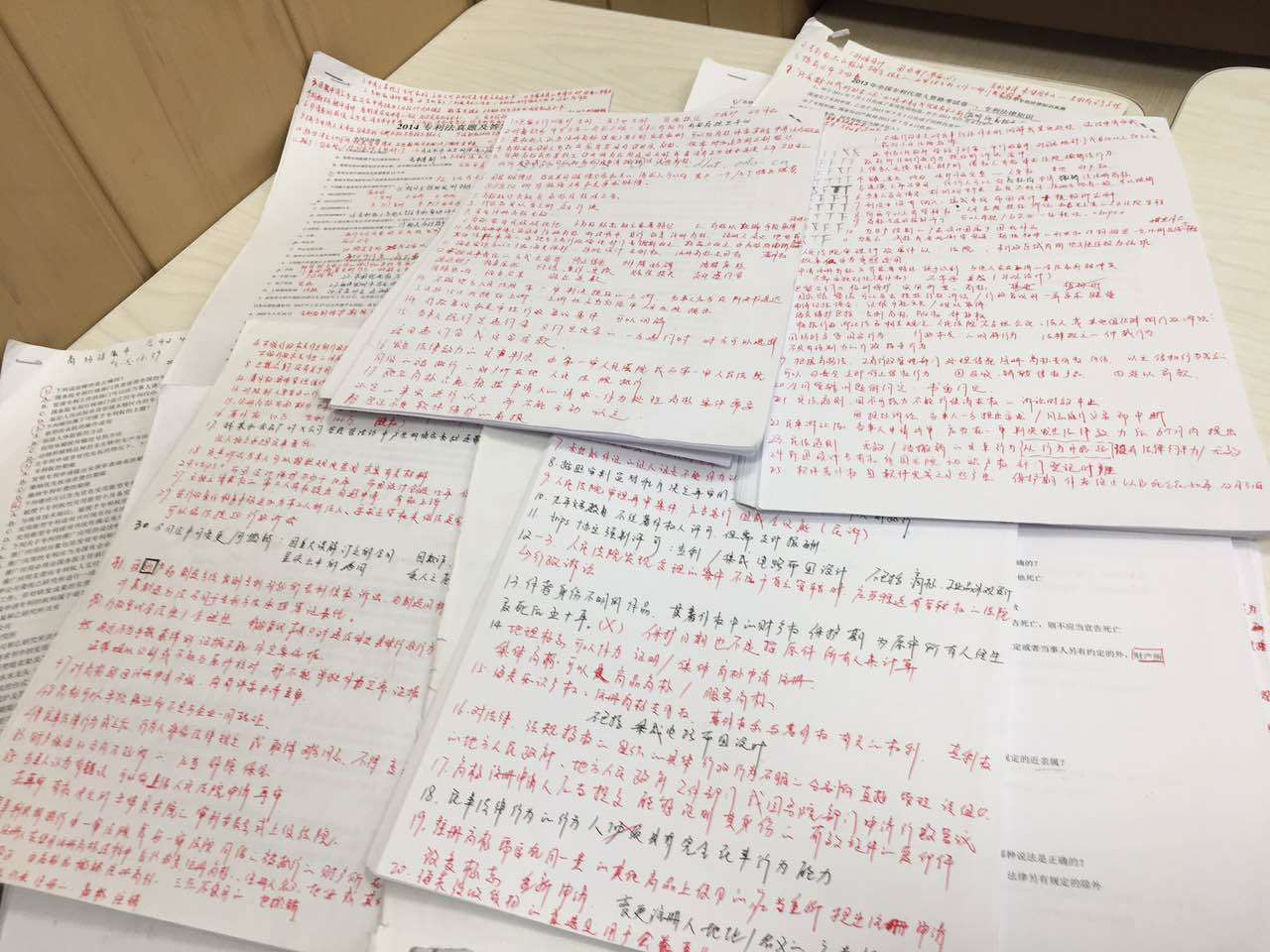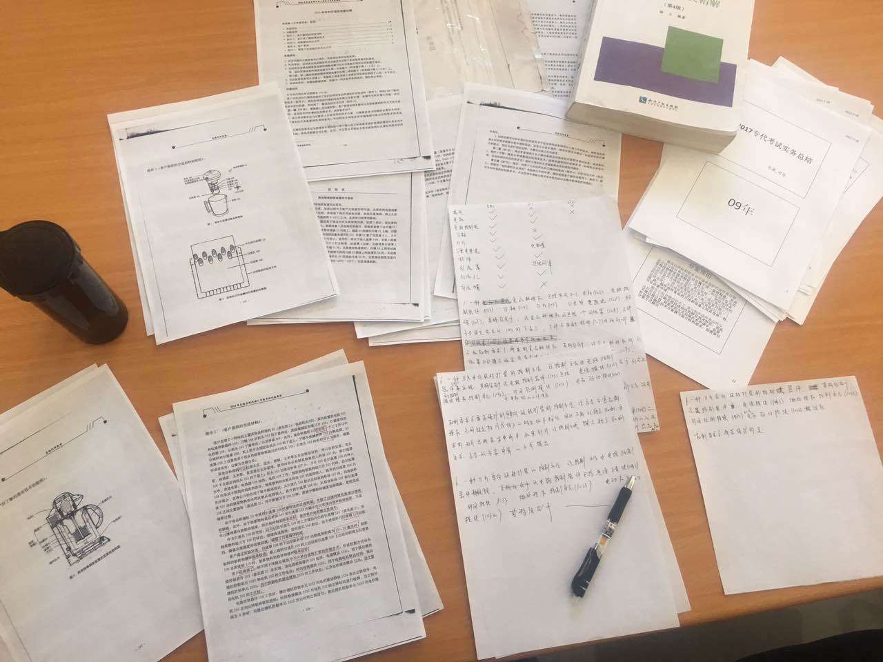9月份我开学了,正式开始了博士生涯。白天上课,晚上继续专利法,这时候我就开始做近几年真题了,我没有选择任何试题软件,而是依旧打印出来了,第一遍做题,我做完之后,会对一下答案,然后对答错的题目画圈,第二天,再做一下这些错的题,第三天进行总结,这样基本一套题就搞定了,每套题的知识点我都标在旁边,插空上课的课间,翻一翻,看一看,然后十一之前,近5年的真题刷完了一遍。实务部分,基本到9月末的时候,剩下三年:13/14/15的真题讨论也结束了,当时感觉有点来不及了,要抓紧了。