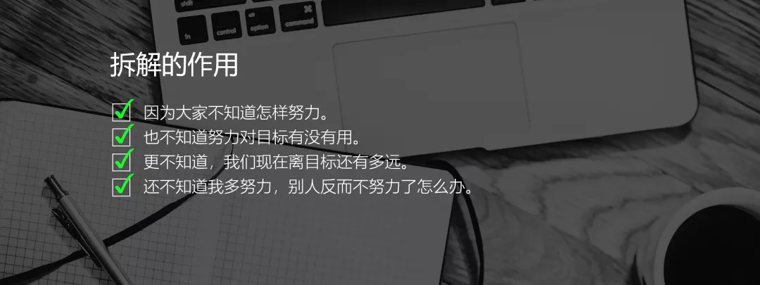 问自己,现在工作中最重要的1~2件事情是什么?每周花5分钟在头脑中回顾进度,保证持续推进。