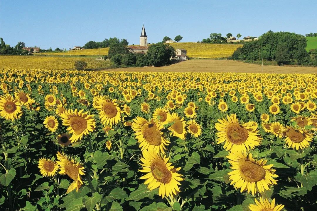 在法国南部,随处可见大片的葵花田,在艳阳高照的夏日,这些明黄色的花朵,仿佛反射着灿烂的太阳的光。
