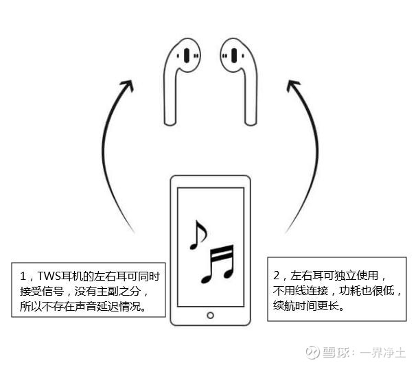其中一种最为常见的方案的工作原理是:左右两个耳机被设定为主副设备,手机首先会和主耳机连接,再由主耳机通过蓝牙,将信号传输到副耳机中,最后实现双耳立体声。这种解决方案最大优势就是兼容性强,无论是哪一款智能手机都可以使用。广泛的兼容从 Android 到 iPhone 等主流智能手机,而缺点则主要有以下几点: