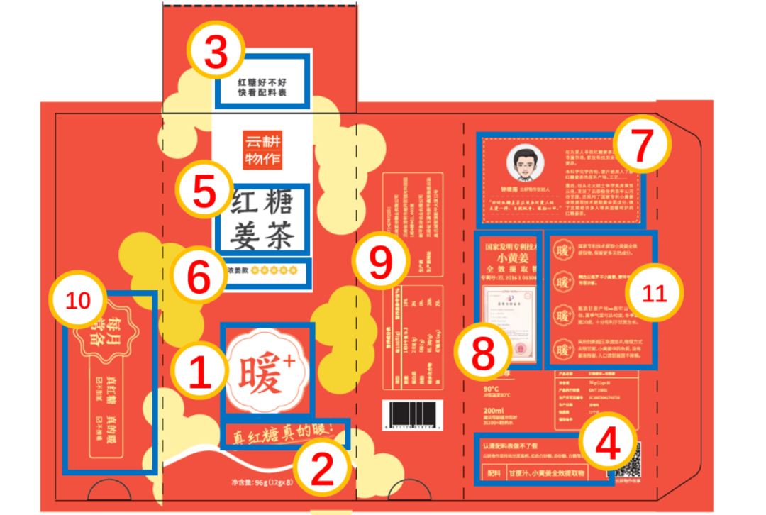 所有设计的东西,一个暖字,一个口号,一个验证方法,一个配料表,品牌名,品类名,品牌故事,复购指令,暖的话语体系,等等,包装上全都包含了。