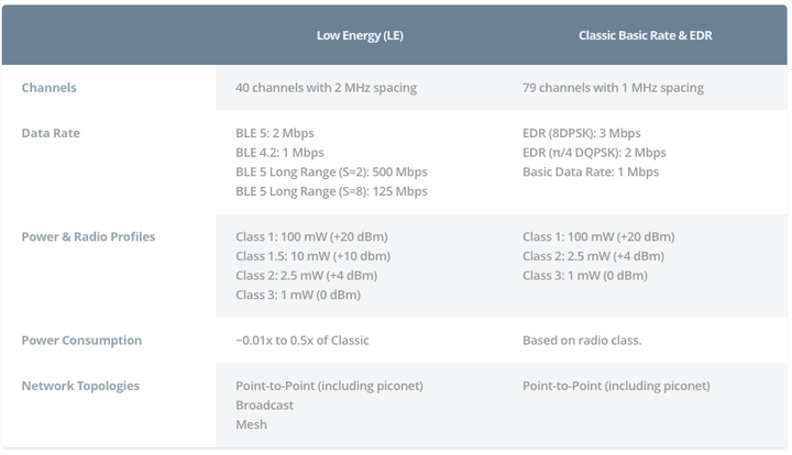 低功耗版蓝牙与经典版蓝牙参数 | 图源:Android Authority