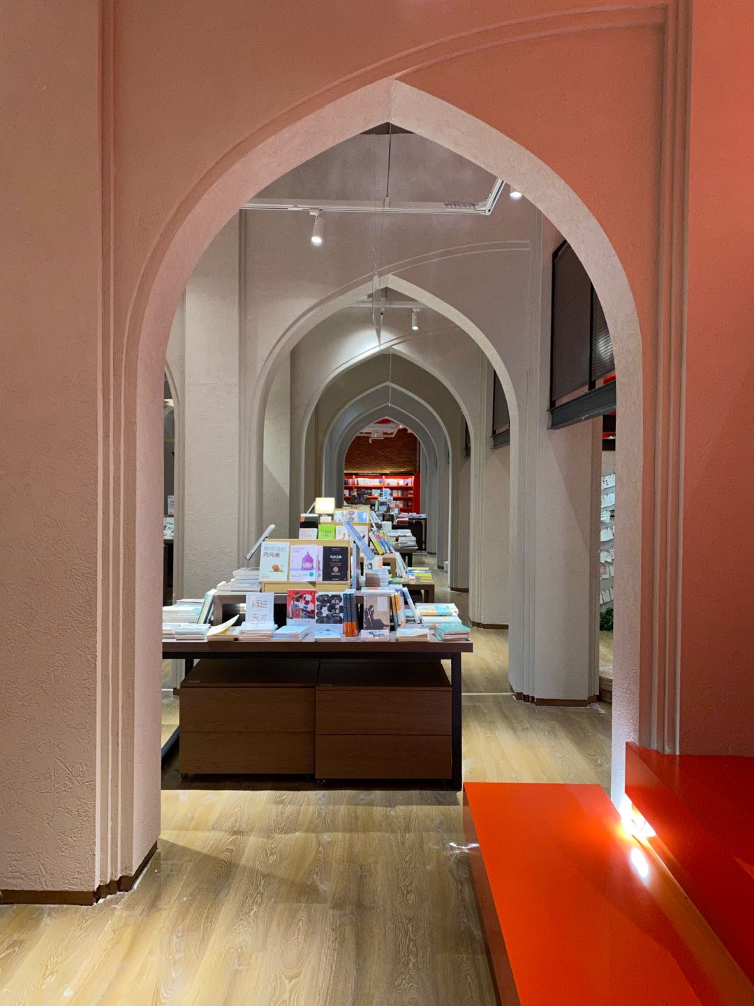 在西宁的几何书店,充满西域特色的高原文化,具有民族特色的唐卡与擦擦,高耸的拱形连廊和辽阔的面积将神圣与庄严演绎地淋漓尽致。