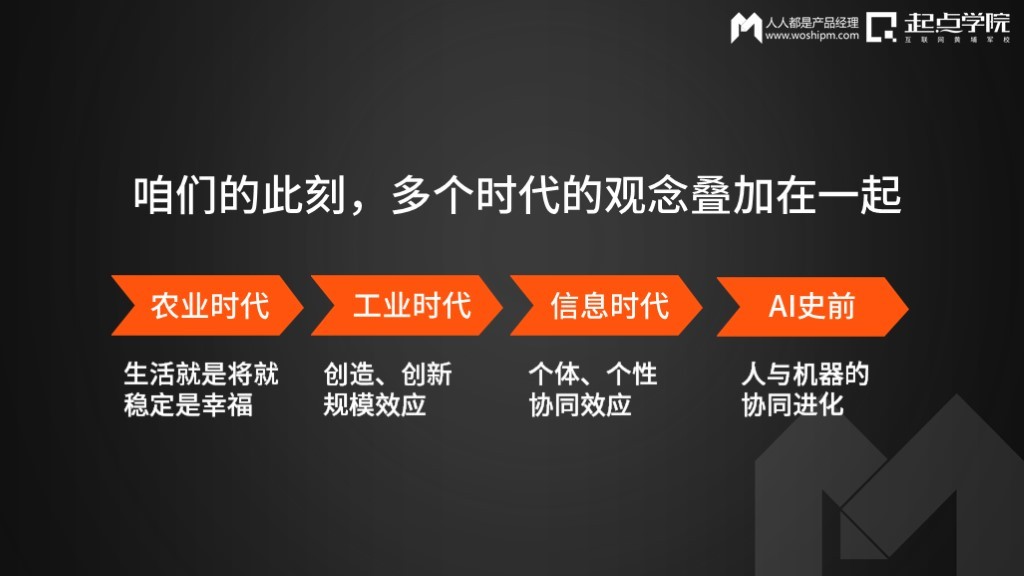 我们处在信息时代(也是AI时代的史前时代),但是我们整个国家,国家的集体意识,同时还有农业时代、前工业时代、后工业时代所有的观念混在一起(中国大部分时间处于农业时代,然后短暂进入了工业时代,然后就快速进入信息时代了)。