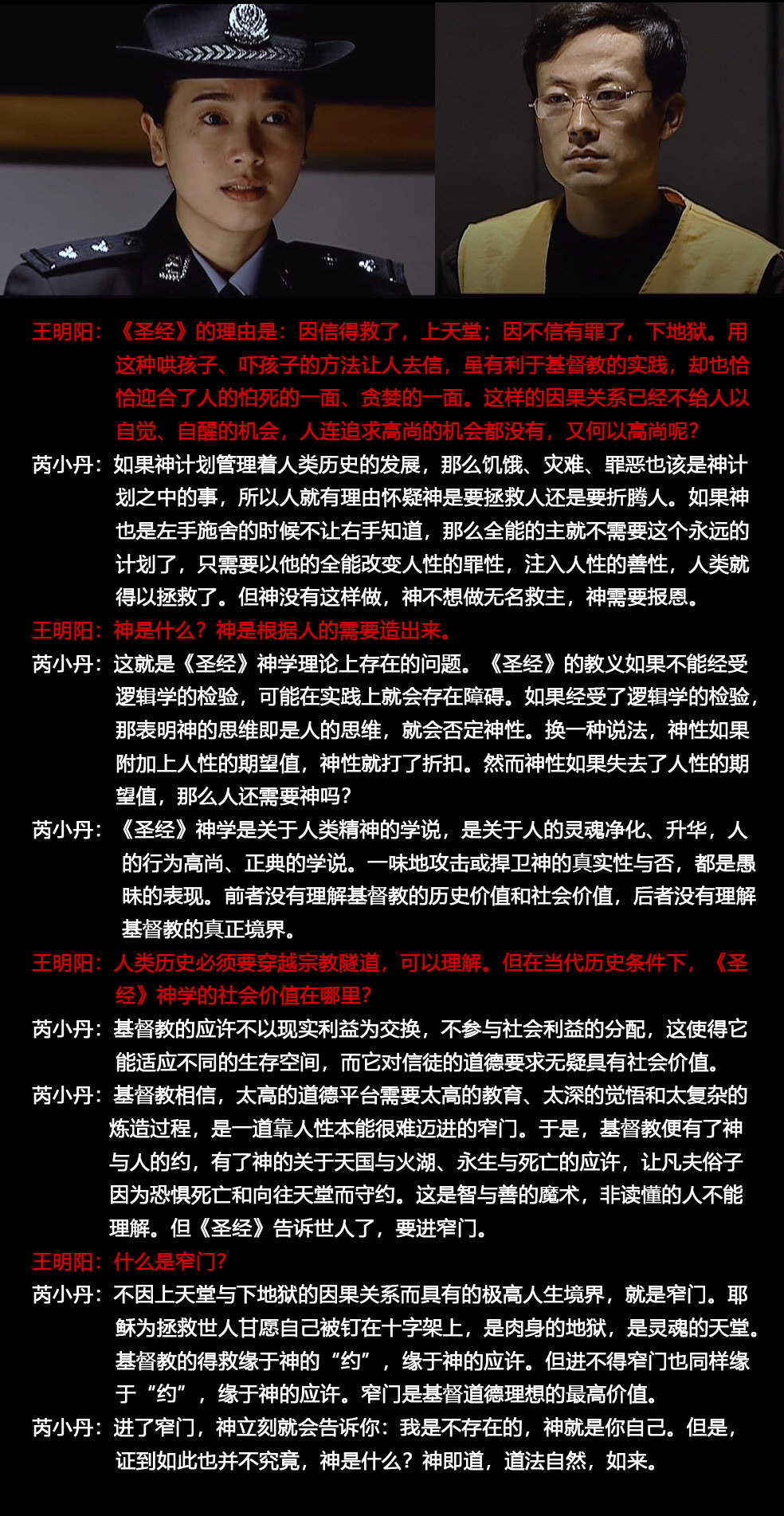 ,此问化被动为主动,并将话题成功拉回到《圣经》是什么的讨论上,从而避免陷入了身份之争和对话资格的对立,此问间接告诉王明阳,我们站在同一水平线上比赛,无关其他。
